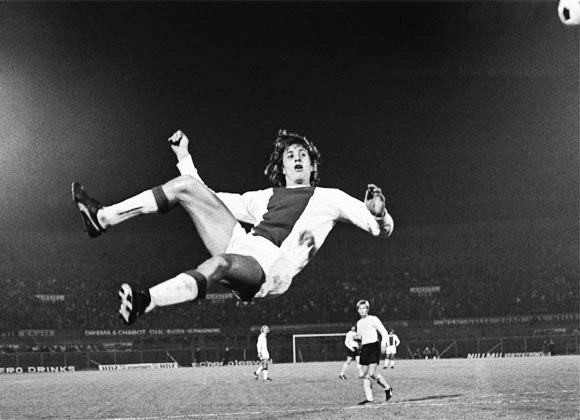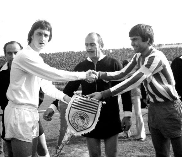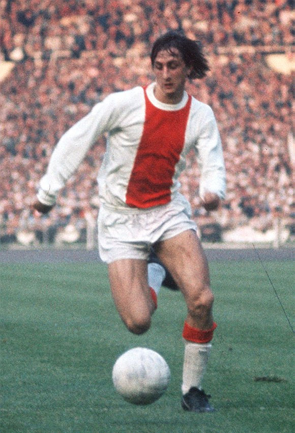 13. Με τη φανέλα του Άγιαξ, στην τελευταία του χρονιά στον ολλανδικό σύλλογο, πριν φύγει για τη Βαρκελώνη (1973). Ο δύσκολος χαρακτήρας του είχε αναγκάσει τους συμπαίκτες του να ψηφίσουν και να του αφαιρέσουν το περιβραχιόνιο του αρχηγού!