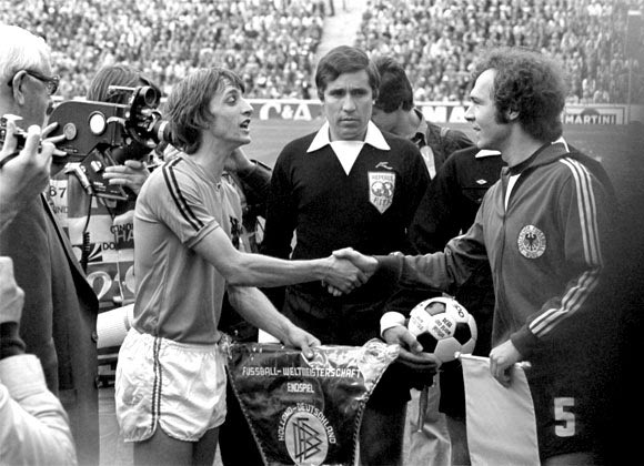 21. Μαζί με τον Φραντς Μπεκενμπάουερ πριν την έναρξη του τελικού του Παγκοσμίου Κυπέλλου της Γερμανίας (7/7/1974).