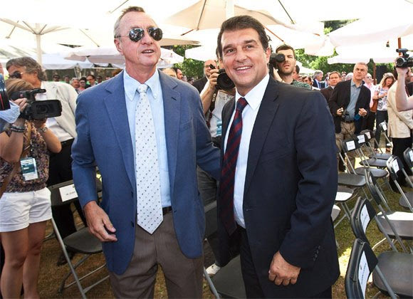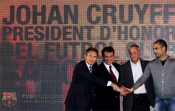 42. Κρόιφ και Λαπόρτα είχαν πάντοτε τις καλύτερες σχέσεις. Εδώ οι δυο τους την ημέρα της παράδοσης της προεδρίας στον Σάντρο Ροσέλ (1/7/2010).