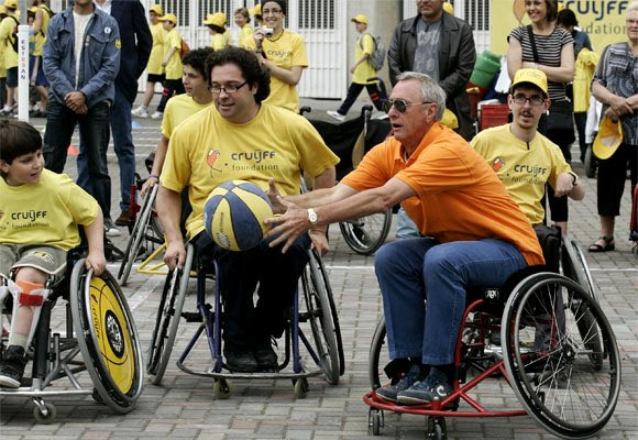 48. Ο Κρόιφ σε μια εκδήλωση του ιδρύματος που φέρει το όνομά του και ασχολείται με ποικίλες δραστηριότητες, με κεντρικό άξονα την προώθηση του ποδοσφαίρου στα μικρά παιδιά (28/5/2010).