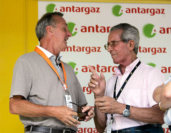49. Ο Κρόιφ μαζί με τον Φεδερίκο Μπααμόντες, τον πρώτο Ισπανό ποδηλάτη που κέρδισε τον Γύρο της Γαλλίας. Ο Ολλανδός ήταν δηλωμένος φαν της ποδηλασίας.