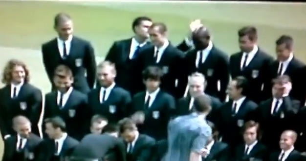 Εκεί βρίσκονταν και αρκετοί παίκτες της Ιταλίας με κοστούμι, όμως ένας από αυτούς φαίνεται πως δεν τα πάει καλά με τα “κυριλέ” ρούχα.