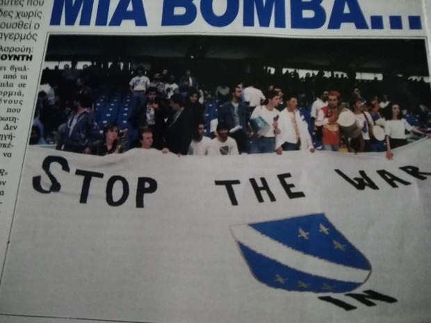 Τότε είχαν δραπετεύσει (στην κυριολεξία, δεν πρόκειται για σχήμα λόγου) με τα χίλια ζόρια και με κίνδυνο της ζωής τους από το φλεγόμενο Σαράγεβο και μάλιστα στις εξέδρες της Hala Ludova ανάρτησαν ένα πανό που έγραφε “Stop the war”.