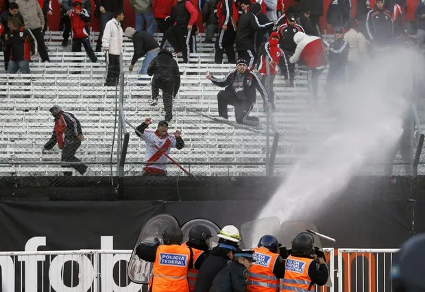 Το “Μονουμεντάλ” ασφυκτικά γεμάτο. Κυριολεκτικά, δεν έπεφτε… καρφίτσα. Οι aficionados της Ρίβερ είχαν προειδοποιήσει για τις συνέπειες. “Σκοτώστε τους ή πεθαίνετε”, ήταν το απειλητικό μήνυμα των ultras, ενόψει του επαναληπτικού επιβίωσης, με αποδέκτες τους παίκτες του κλαμπ, που ένιωθαν την πίεση στο… πετσί τους.