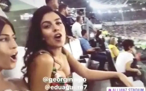 Δεν ήταν όμως μόνο ο “CR7” που τράβηξε πάνω του βλέμματα με την παρουσία του στο χορτάρι αλλά και η σύντροφός του Χεορχίνα Ροντρίγκεθ, η οποία πήρε θέση από νωρίς στις εξέδρες του “Allianz Stadium” συνοδευόμενη από μία φίλη της και τρέλανε τον φωτογραφικό φακό με το πολύχρωμο φόρεμά της.