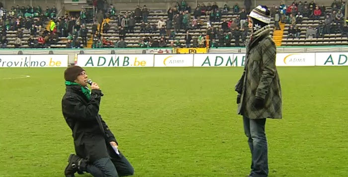 Οπαδός της Σερκλ Μπριζ επέλεξε να κάνει πρόταση γάμου στην αγαπημένη του μέσα στο γήπεδο, στο πλαίσιο της αναμέτρησης της ομάδας του με Σταντάρ Λιέγης, και πέτυχε να... γελοιοποιηθεί Δείτε το απίστευτο βίντεο!