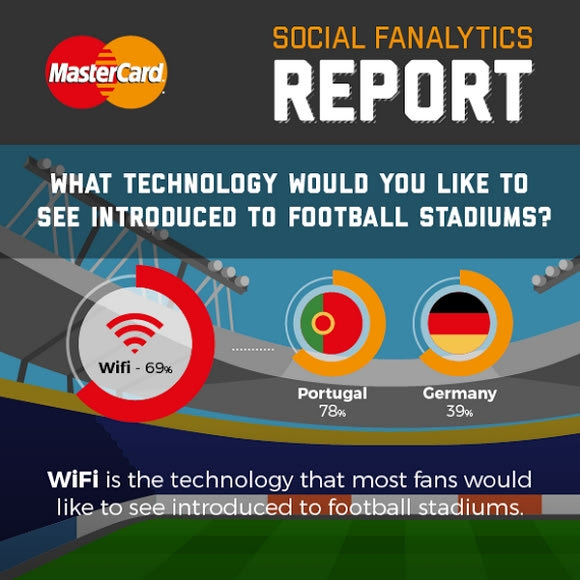 Η έρευνα Social Fanalytics αναδεικνύει τη σημασία του να παραμένει κανείς “συνδεδεμένος”, με το 69% των φιλάθλων να δηλώνουν ότι θα ήθελαν να υπάρχει διαθέσιμο Wi-Fi σε όλα τα γήπεδα. Σε Ιταλία και Πορτογαλία, το σχετικό ποσοστό φτάνει στο 79% και 70% αντίστοιχα, οι Γερμανοί φίλαθλοι δεν δείχνουν μεγάλο ενδιαφέρον για το θέμα (39%), ενώ οι Έλληνες επίσης αναζητούν αυτή την παροχή σε ποσοστό 64%.