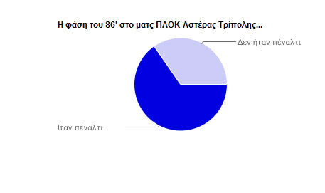Πολλά ήταν τα δικά σας μηνύματα στην ερώτηση της εκπομπής SUPER BALL για την επίμαχη φάση του 86' στο ματς ΠΑΟΚ - Αστέρας Τ. Ήταν ή δεν ήταν πέναλτι; Το 67% από τους τηλεθεατές της εκπομπής ψήφισαν ΝΑΙ ότι ήταν πέναλτι και το άλλο 33% είχε αντίθετη άποψη.