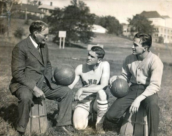 Ο Νέισμιθ με φοιτητές-παίκτες του Πανεπιστημίου του Κάνσας