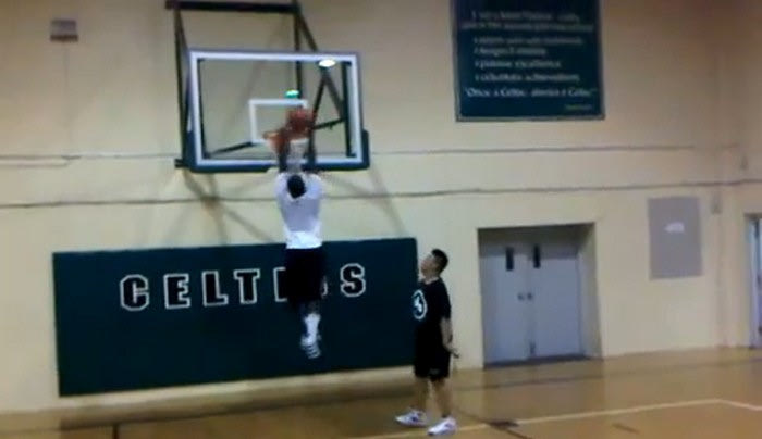 Αμέσως μετά το τέλος της προπόνησης, ο Τζον Μπόατενγκ αποφάσισε να κάνει ένα κάρφωμα για να εντυπωσιάσει τους παίκτες του αλλά τελικά μάλλον το μετάνιωσε.