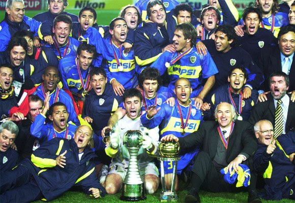 Αναμνηστική φωτογραφία μετά την κατάκτηση του Διηπειρωτικού Κυπέλλου από την Μπόκα Τζούνιορς (2000)
