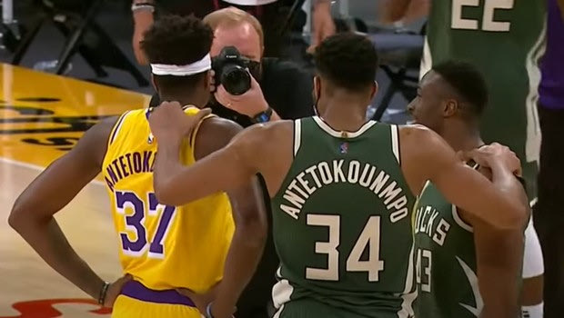 Τώρα, πριν από λίγες ώρες, συνέβη κάτι άλλο… Κάτι συναρπαστικό, συγκλονιστικό και ανατριχιαστικό για όλη τη φαμίλια, για το ΝΒΑ, για το ελληνικό μπάσκετ και πάει λέγοντας… Σήμερα τα ξημερώματα η συνεύρεση του Γιάννη, του Θανάση και του Κώστα στον αγώνα Λέικερς- Μπακς φαινόταν σαν ψέμα, αλλά δεν ήταν τέτοιο!
