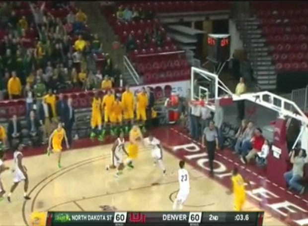Στον αγώνα μπάσκετ Νοrth Dakota State – Denver μπήκαν δύο σουτ που θα μπορούσαν να χαρακτηριστούν νικητήρια. Αν και το ένα αναίρεσε το άλλο. Το σκορ ήταν 60-60 έξι δευτερόλεπτα πριν το τέλος. Η North Dakota State προηγήθηκε με τρίποντο 63-60. Ακριβώς με την λήξη της κανονικής διάρκειας του αγώνα το Denver ισοφάρισε με τρίποντο από την γραμμή του γηπέδου. Η North Dakota State νίκησε στην παράταση με 73-69. Δείτε το βίντεο.