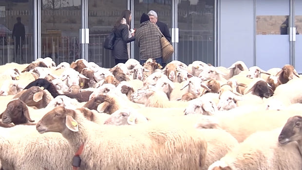 Κοπάδι από πρόβατα στην είσοδο του γηπέδου της Ατλέτικο!