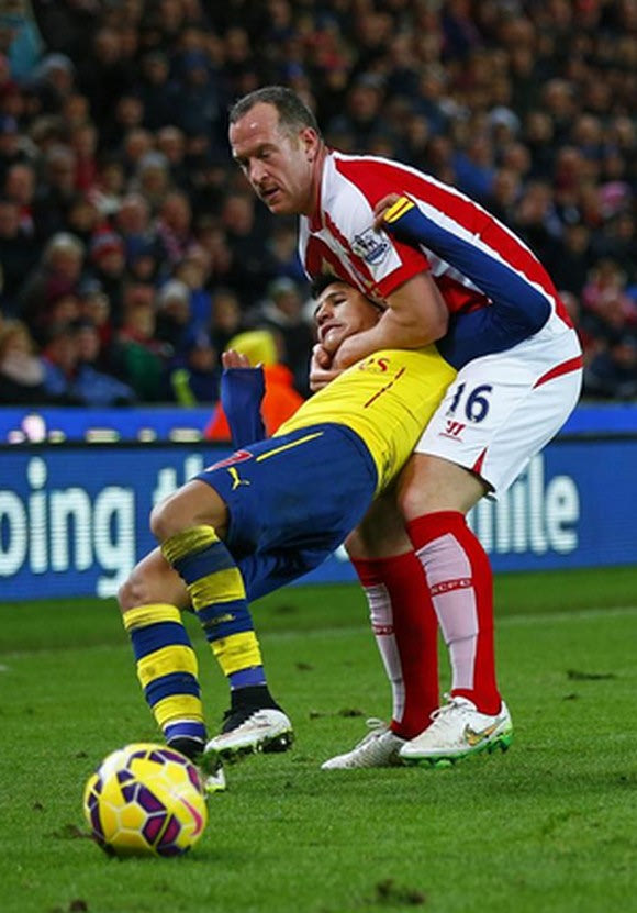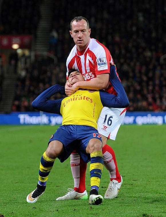 Οι παίκτες της Στόουκ επιστράτευσαν κάθε μέσο για να σταματήσουν την Άρσεναλ. Δείτε τον Τσάρλι Άνταμ να ακινητοποιεί με κεφαλοκλείδωμα τον Αλέξις Σάντσες (φωτογραφίες+video)!