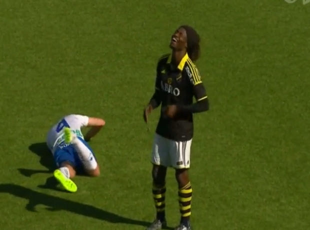 Ο αρχηγός της Νόρκεπινγκ, Αντρέας Γιόχανσον, έγινε ρεζίλι στην προσπάθειά του να δείξει στον διαιτητή ότι χτυπήθηκε από τον Μοχάμεντ Μπανγκουρά, ο οποίος έσκασε στα γέλια, βλέποντας τον 33χρονο Σουηδό να σωριάζεται φαρδύς πλατύς στο χορτάρι, κάνοντας ότι πονάει.