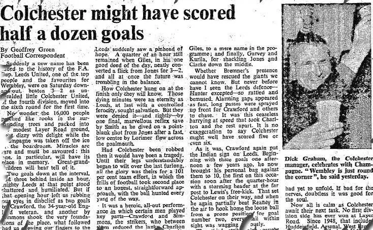 Ο αποκλεισμός, στα μέσα της σεζόν, από την Κόλτσεστερ ομάδα 4ης κατηγορίας, στον 5ο γύρο του κυπέλλου Αγγλίας, ταρακούνησε τους παίκτες όχι όμως και τον Ντον Ρέβι που προσπάθησε να μείνει ψύχραιμος. Άλλωστε, παρέμεναν πρώτοι στο πρωτάθλημα.