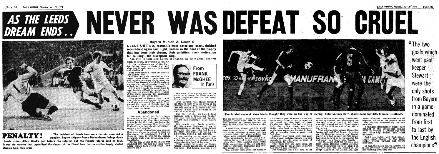 Για τους οπαδούς της Λιντς, το Παρίσι θα υπενθυμίζει πάντα την καταραμένη της πλευρά, την στιγμή που της έκλεψαν τη δόξα και το δικαίωμα να περάσει στο πάνθεον των ομάδων που κατέκτησαν το βαρύτιμο τρόπαιο!