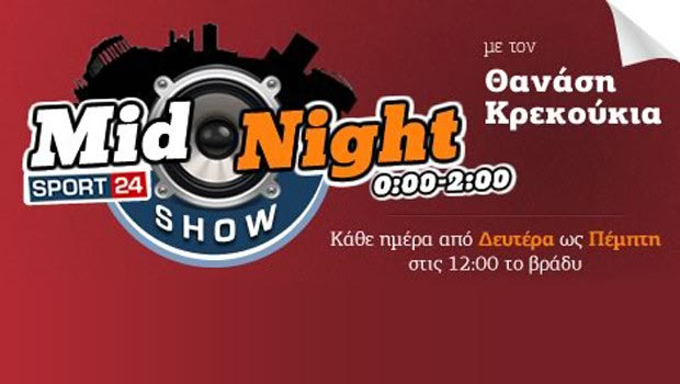 Ο Θανάσης Κρεκούκιας από Δευτέρα ως Πέμπτη δίνει το δικό του midnight show στα μικρόφωνα του Sport24.gr. Μια εκπομπή για όσους βλέπουν τα μεσάνυχτα, ως την αρχή της ημέρας.