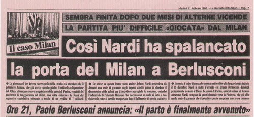 Ο Σίλβιο Μπερλουσκόνι, ανερχόμενος τότε επιχειρηματίας των ΜΜΕ, είχε από τότε τη συνήθεια να εκμεταλλεύεται τη δημοσιότητα που προσφέρει απλόχερα το ποδόσφαιρο και να τη χρησιμοποιεί για χάρη της πολιτικής του ανέλιξης, καθώς πλην της αγοράς της Μίλαν, βάφτισε αργότερα το κόμμα του με τον προβοκατόρικο τίτλο, “Forza Italia”.