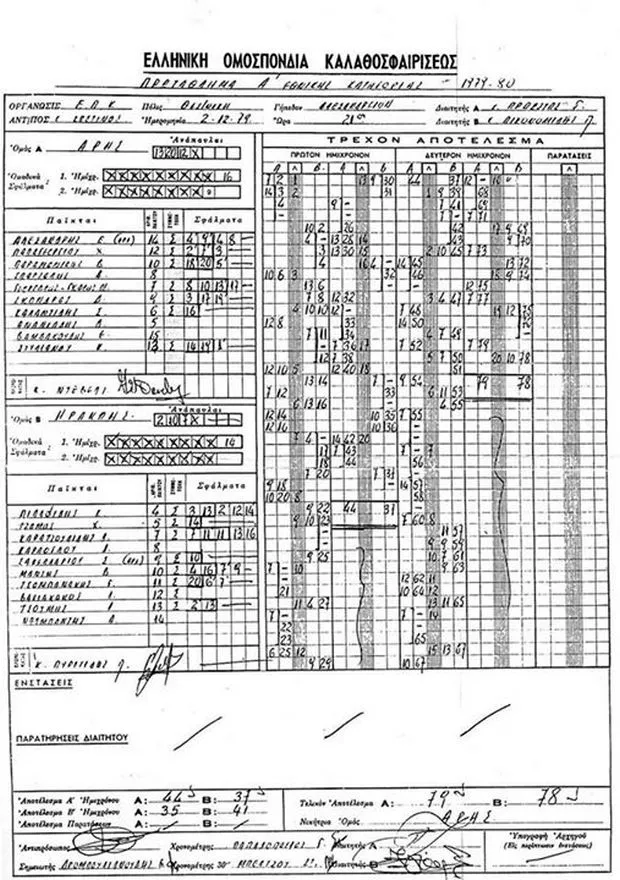Το φύλλο αγώνα από τον αγώνα Άρης - Ηρακλής που έκανε το ντεμπούτο του ο Νίκος Γκάλης Sport24.gr