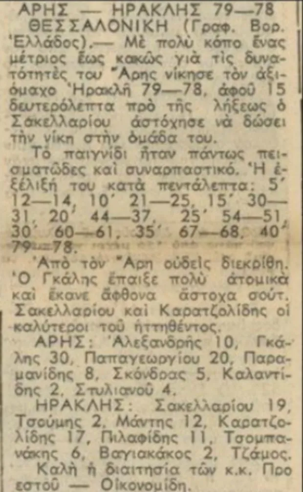 Βεβαίως εκείνο το βράδυ ο Γκάλης έκανε τον Σακελαρίου ν’ αλαφιάσει και τον Καρατζουλίδη (σε μια φάση στην οποία περπάτησε στον αέρα, εν είδει trailer από τα προσεχώς) να νομίζει ότι βλέπει φαντάσματα, έκανε τέσσερα φάουλ και εν τέλει έβαλε 30 πόντους, αλλά τόσους έβαζε συνήθως και ο Παπαγεωργίου!