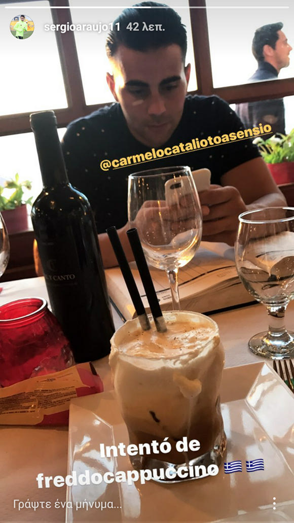 Μπορεί τα μηνύματα που φθάνουν από τα Κανάρια Νησιά για το ενδεχόμενο επιστροφής του στην ΑΕΚ να μην είναι τα πλέον αισιόδοξα, αλλά ο Σέρχιο Αραούχο δεν έχει ξεχάσει τη χώρα μας και μαθαίνει στους Ισπανούς τον... freddo cappuccino! (photo)