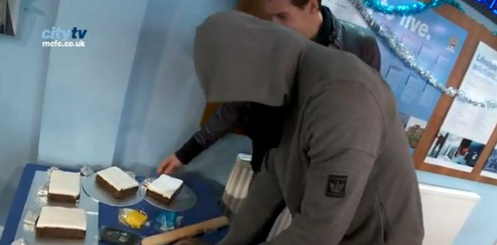 Αυτό έγινε μέσω της παρουσίας του σε εκδήλωση της ομάδας όπου κλήθηκε μαζί με αρκετούς συμπαίκτες του να πάρει μέρος σε διαγωνισμό για την διακόσμηση ενός χριστουγενιάτικου κέικ, με τον νεαρό επιθετικό να δείχνει “έξω από τα νερά του”.