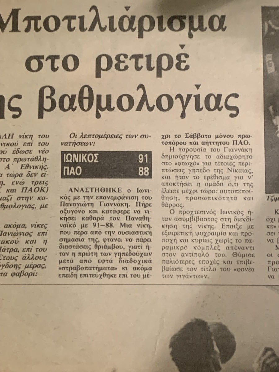 Ο Ιωνικός που εκείνη την εποχή αποτελούσε την μπασκετική εκδοχή του Φωστήρα και νομιμοποιούνταν να φέρει την ταμπέλα του «φονέα των γιγάντων» έριξε για πρώτη φορά τον Παναθηναϊκό στο κανναβάτσο τη σεζόν 1980-81 με σκορ 83-80 κι ενώ μέχρι τότε είχε υποστεί έντεκα απανωτές ήττες.