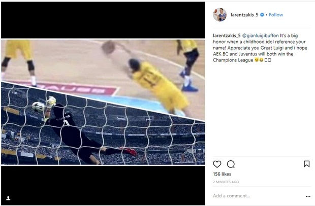 Ο άνθρωπος που τα άρχισε όλα, ο ίδιος ο Λαρεντζάκης, σχολίασε με τη σειρά του στο instagram, κάνοντας mention τον λογαριασμό του Μπουφόν, και έκανε μία… ευχή για τις δύο ομάδες τους που βρίσκονται στα προημιτελικά του Champions League.