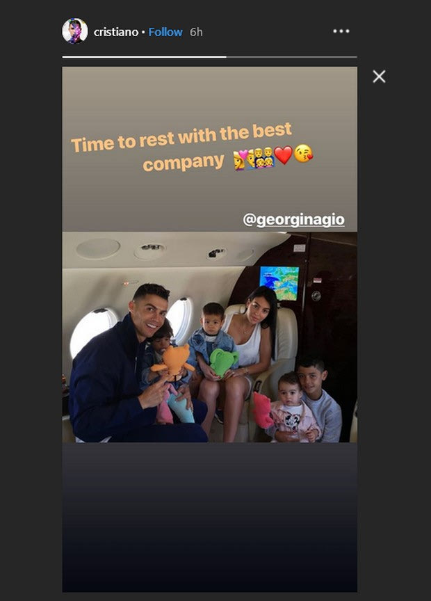 Δίπλα του στο πρώτο ταξίδι στο πλαίσιο των διακοπών του ήταν η Χεορχίνα Ροντρίγκεθ και τα παιδιά τους, με τον Ρονάλντο να σχολιάζει “Ώρα για ξεκούραση με την καλύτερη παρέα” και τη σύντροφό του να προσθέτει “Καλή ημέρα με αγάπη”.
