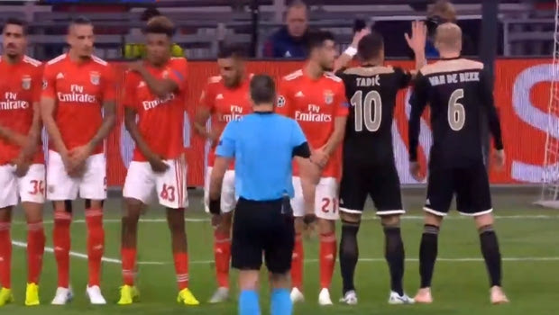 Ο Τάντιτς μπήκε δίπλα στους παίκτες της Μπενφίκα την ώρα που εκείνη έκαναν τείχος προσπαθώντας να μπερδέψει τον Οδυσσέα Βλαχοδήμο χωρίς όμως να τα καταφέρει. (VIDEO)