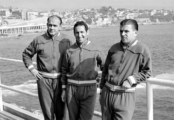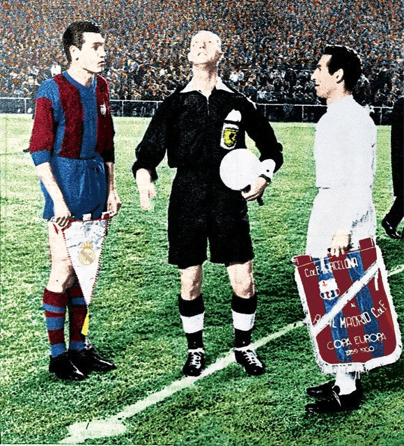 Τζουάν Σεγάρα και Πάκο Χέντο πριν τη σέντρα του πρώτου ευρωπαϊκού clásico της ιστορίας (21/4/1960)