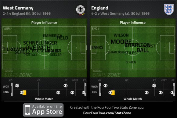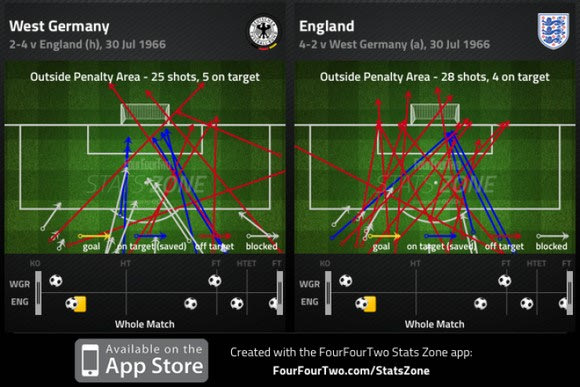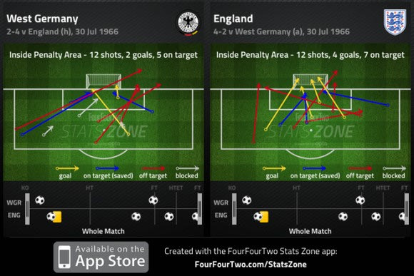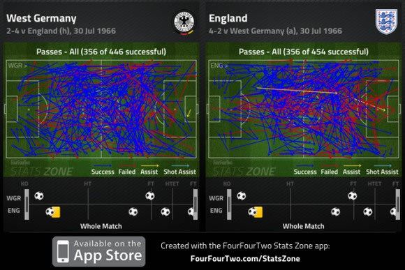 Η Αγγλία νίκησε 4-2 στην παράταση και ενδιαφέρον παρουσιάζουν ύστερα από 49 χρόνια τα στατιστικά στοιχεία του αγώνα. Η ανάλυση που έκανε η ιστοσελίδα 4-4-2 σε συνεργασία με την Opta, είναι η ίδια με αυτή που πραγματοποιούν οι ιστοσελίδες κάθε εβδομάδα στα ευρωπαϊκά πρωταθλήματα.