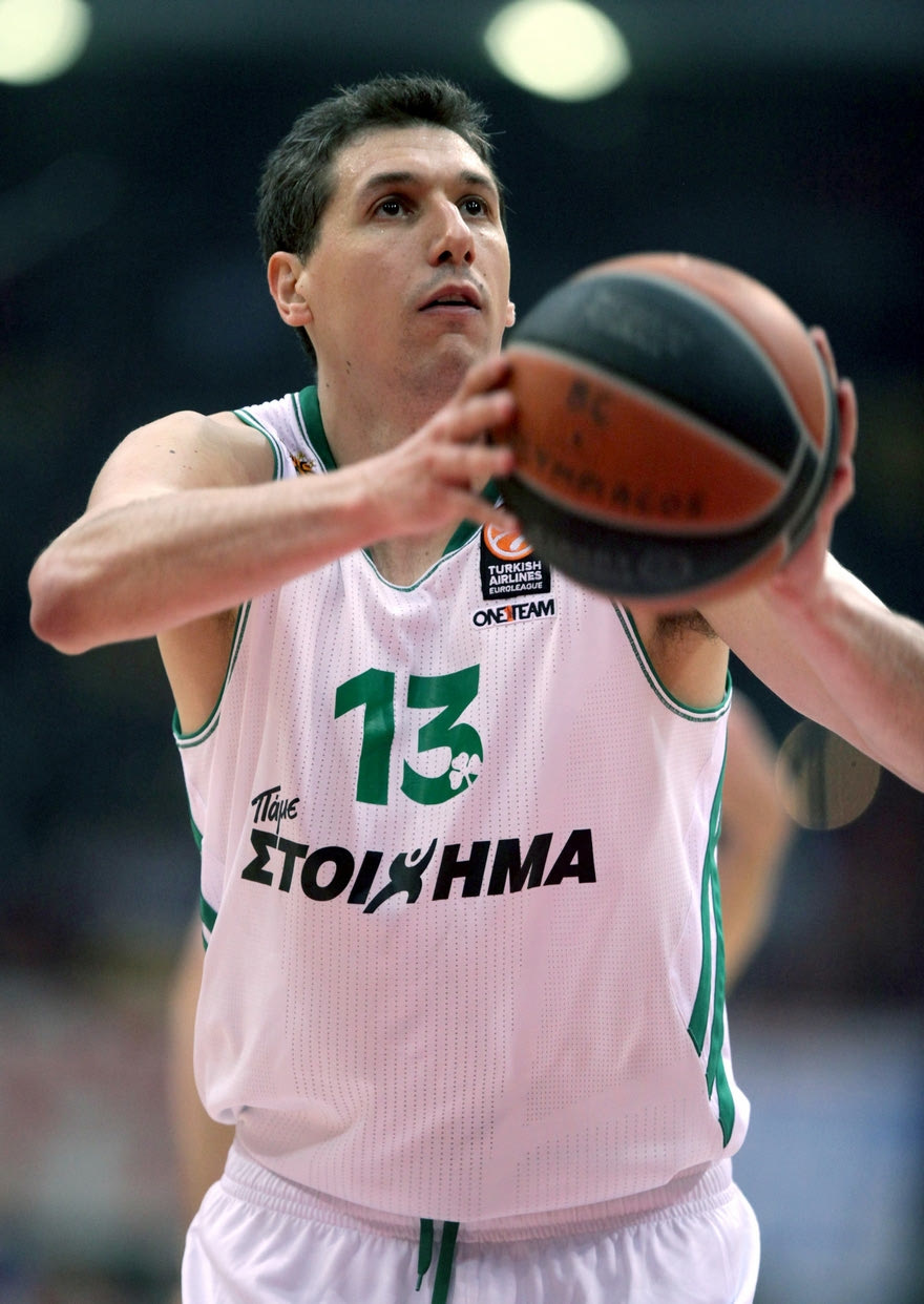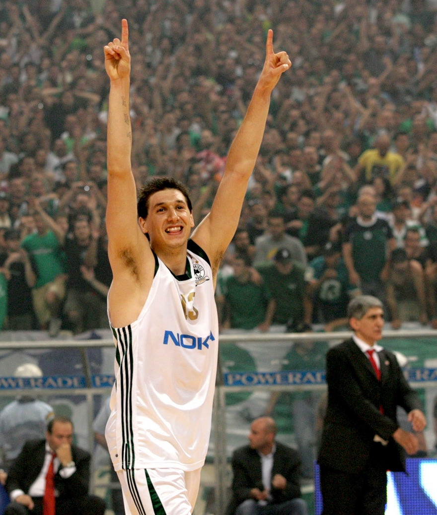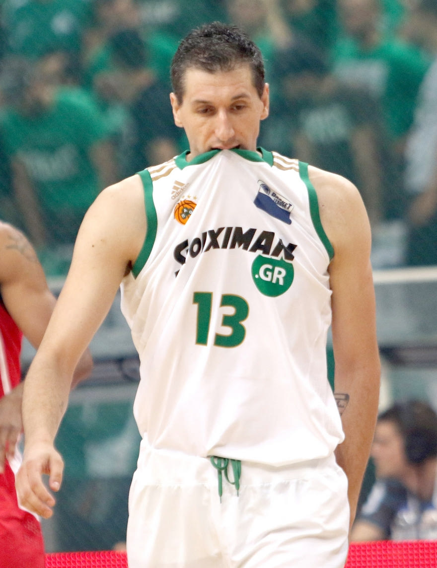 Στο εντός έδρας παιχνίδι με τη Μακάμπι Τελ Αβίβ για τα playoffs της Euroleague, στις 5 Απριλίου 2012. Ήταν ο πέμπτος αγώνας της σειράς, αυτός που έδωσε στον Παναθηναϊκό το εισιτήριο για το Final Four της Κωνσταντινούπολης, το τελευταίο στο οποίο συμμετείχε.