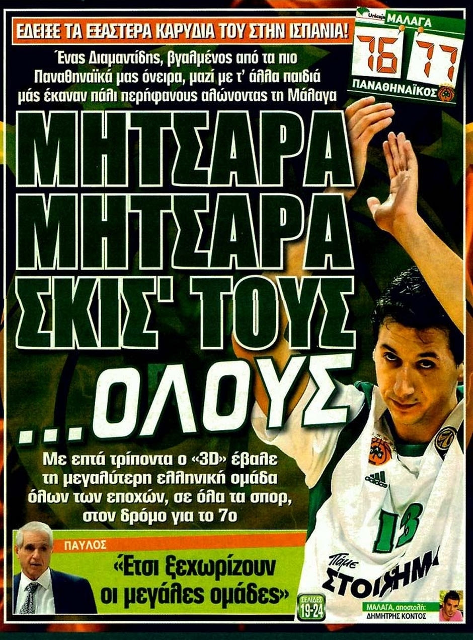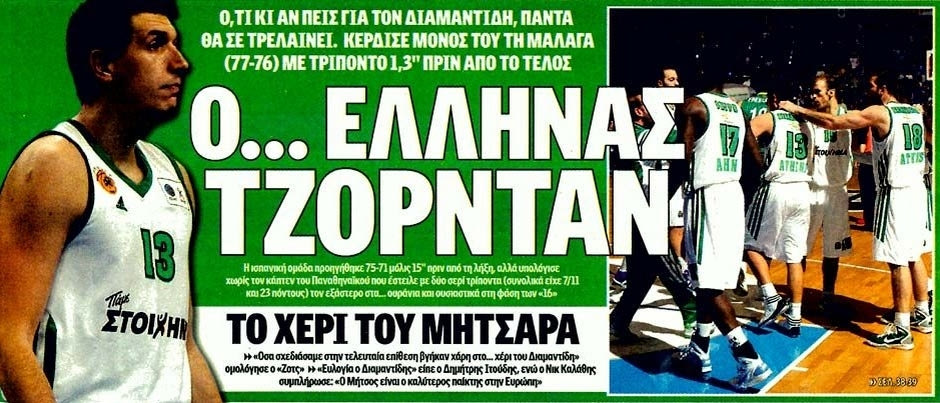 Ποια περιγραφή ξεχωρίζει; “Dia-man-ti-dis! Que historia”, αναφωνούν και αναρωτιούνται οι speakers της ιταλικής τηλεόρασης μετά το winning shot που έβαλε απέναντι στους “μπλαουγκράνα” λίγες ημέρες νωρίτερα, στο “Παλάου Μπλαουγκράνα”.
