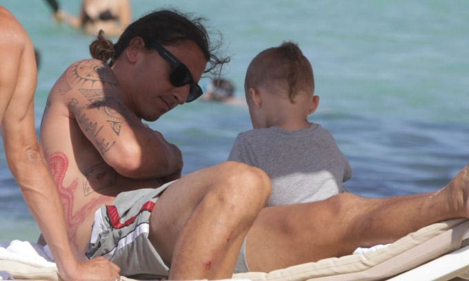 Πέρα από την οικογένειά του, ο 30άχρονος άσος είχε και ποδοσφαιρική παρέα, με τον φωτογραφικό φακό να απαθανατίζει δίπλα του στην παραλία δύο πρώην συμπαίκτες του στη Μίλαν, τον Φίλιπο Ιντσάγκι και τον Ινιάτσιο Αμπάτε.