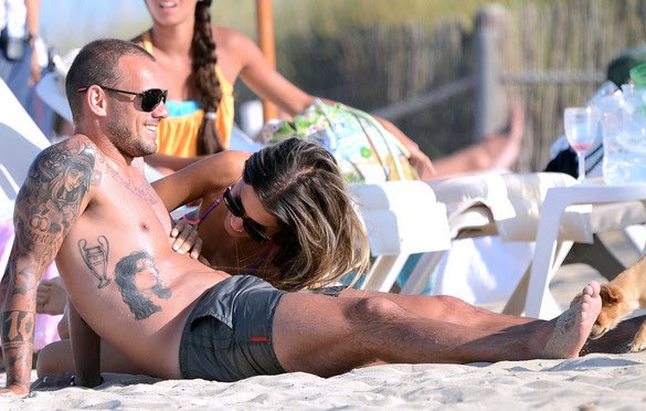 Ο 29χρονος Ολλανδός διεθνής μέσος βρίσκεται αυτές τις ημέρες στην εξωτική Ιμπίθα και δεν θα μπορούσε να λείπει από κοντά του η σέξι σύζυγός του Γιολάντε Καμπάου.
