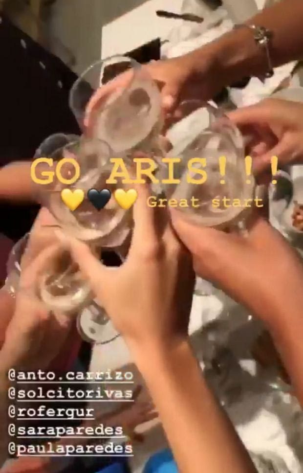 Η κυρία Κολάσο, Σολ Ρίβας, μάλιστα, η οποία περνάει μέχρι στιγμής υπέροχα στη Θεσσαλονίκη, γιόρτασε τη νίκη του Άρη στην επιστροφή του στα “μεγάλα σαλόνια”. Απόδειξη το story που ανέβασε στο προφίλ της στο instagram, με το μήνυμα “Πάμε Άρη!!! Εξαιρετικό ξεκίνημα” και τρεις κιτρινόμαυρες καρδούλες.