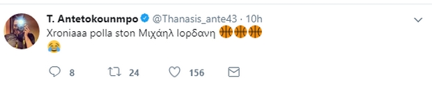 “Χρόνια πολλά στον Μιχαήλ Ιορδάνη” έγραψε χαρακτηριστικά ο Θανάσης, σκορπώντας το γέλιο.
