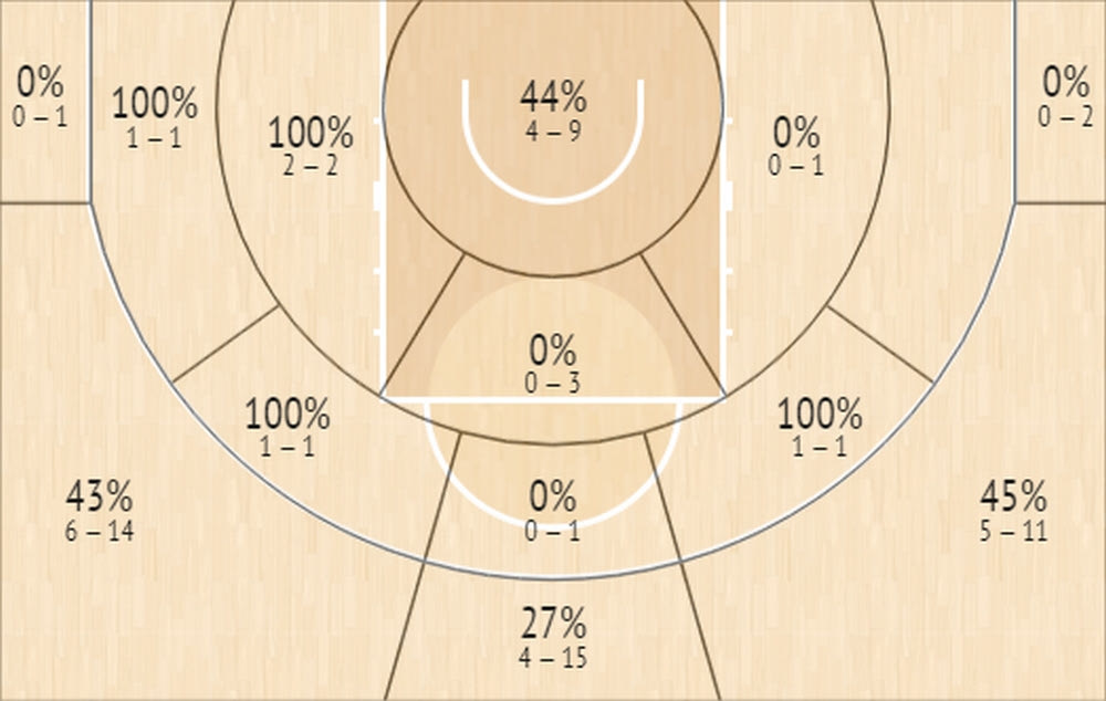 Παίρνει τέλος 6.8 σουτ ανά φορά και ξεπερνά το 51% στην κλίμακα των effective field goals, άρα απειλεί με σχετική συνέπεια.