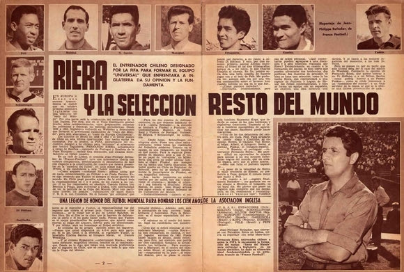 Ο Ριέρα είχε οδηγήσει την Χιλή ένα χρόνο πριν, στο Μουντιάλ του 1962, στην τρίτη θέση του τουρνουά, πίσω από τις Βραζιλία και Τσεχοσλοβακία. Ήταν ο προπονητής που καθιέρωσε την τετράδα στην άμυνα αλλά και το τεχνητό οφσάιντ. Η FIFA όρισε ως ημερομηνία διεξαγωγής του αγώνα την Τετάρτη 23 Οκτωβρίου (για να μην συμπέσει με τα εθνικά πρωταθλήματα) και ο Ριέρα ξεκίνησε την «στρατολόγηση» της πρώτης Μικτής Κόσμου στην ιστορία του ποδοσφαίρου. Τελικά υπήρξαν αρκετές απουσίες με σημαντικότερη αυτή του Πελέ.