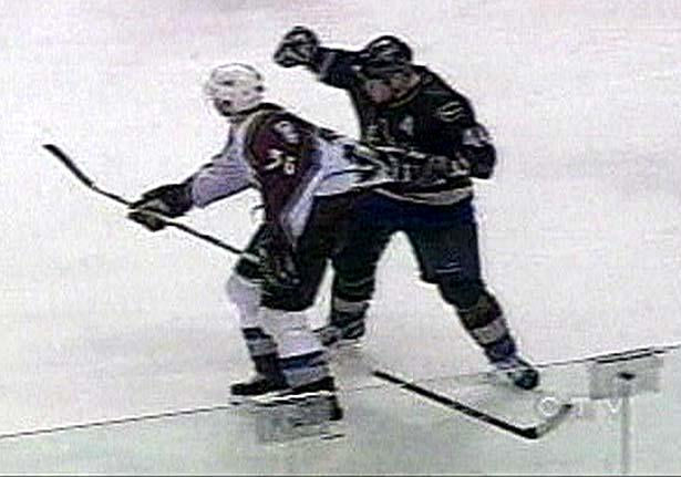O Steve Moore έχει χτυπήσε τον Markus Näslund. Ο Todd Bertuzzi, συμπαίκτης του δεύτερου, ψάχνει για εκδίκηση. Πλησιάζει από πίσω τον Moore και τον χτυπάει στο κεφάλι με απίστευτη βιαιότητα.