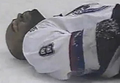 Ο Donald Brashear πέφτει με το κεφάλι στον πάγο και μένει αναίσθητος. Οι συμπαίκτες του αρχίζουν στο κυνήγι τον Marty McSorley. Το ριπλέι είναι ξεκάθαρο. Ο τελευταίος χτύπησε από πίσω με το μπαστούνι στο κεφάλι τον Brashear.