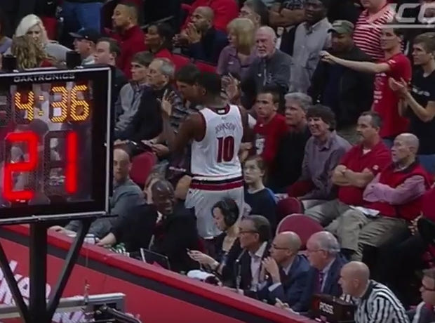 Στον αγώνα του Louisville με το NC State για το NCAA, o Τζέιλεν Τζόνσον κάθισε σε λάθος πάγκο και χρειάστηκε μερικά δευτερόλεπτα για να το αντιληφθεί και να επιστρέψει σε αυτό της ομάδας του (Louisville).