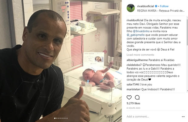 Ο παλαίμαχος μεσοεπιθετικός του Ολυμπιακού και της ΑΕΚ, Ριβάλντο έγινε παππούς σε ηλικία 45(!) ετών, καθώς η σύζυγος του γιου του, Ριβαλντίνιο έφερε στον κόσμο ένα αγοράκι.