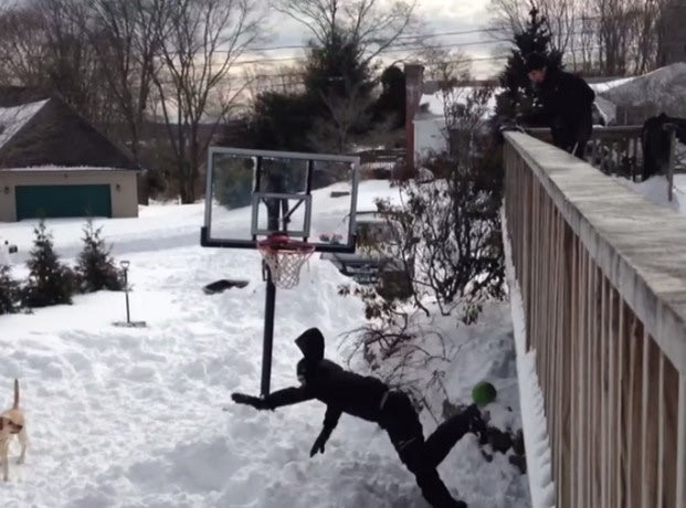 Το χιονισμένο τοπίο δεν βοηθούσε τους νεαρούς πρωταγωνιστές του βίντεο να παίξουν μπάσκετ. Έτσι, φαίνεται ότι αποφάσισαν να μιμηθούν κάποιο από τα εντυπωσιακά καρφώματα που κάνουν ειδικές ομάδες στο NBA και όχι μόνο.