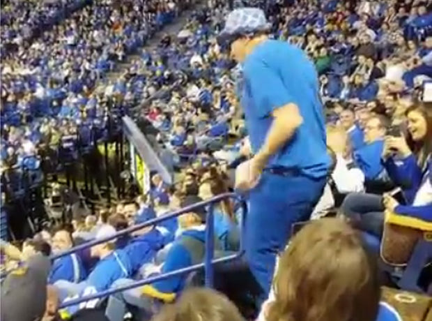 Ένας μεγαλούτσικος φίλαθλος των Kentucky πήγε να πανηγυρίσει στις κερκίδες παίρνοντας μία κοπέλα αγκαλιά, όμως το μόνο που κατάφερε ήταν να φάνε μία απίστευτη τούμπα.