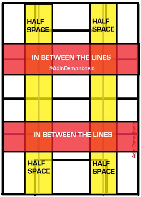 Σε δύο πολύ ενδιαφέρουσες αναρτήσεις στο blog του ο @ΑdinOsmanbasic έχει κάνει εκτενή αναφορά στα σημεία του γηπέδου που επιχειρούν πλέον να χτυπήσουν οι ομάδες. Μία από τις βασικές ιδέες είναι πως προσπαθούν (ή θα έπρεπε να προσπαθούν) να βάλουν παίκτες σε mixed positions όπως τις ονομάζει. Δηλαδή σε θέσεις που είναι τόσο “between the lines” όσο και σε “halfspaces” (βλέπε το γράφημα παρακάτω). Με άλλα λόγια ο στόχος δεν είναι να κινηθούν οι ποδοσφαιριστές απλά ανάμεσα στην άμυνα και τα χαφ, αλλά κι ανάμεσα στα στόπερ και τους μπακ. Όχι οριζόντια ή κάθετα, αλλά διαγώνια. Η μαγική λέξη για τη φετινή Bayern.