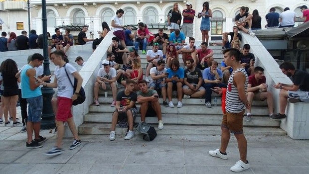Άνθρωποι που έχουν ακροβολιστεί σε κάθε γωνιά της πλατείας κοιτάζοντας τα κινητά τους τηλέφωνα με αγωνία και πλήρη ετοιμότητα. Τι κάνουν; Μα φυσικά παίζουν pokemon go!